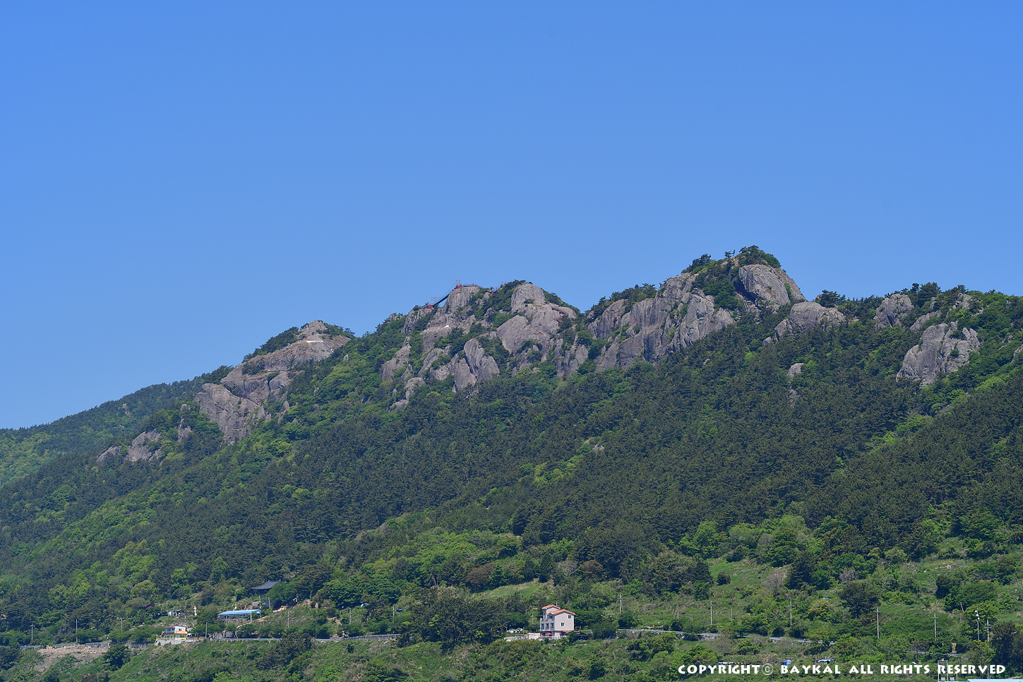 사량도 윗섬 바닷가 에서 바라본 가마봉-향봉-옥녀봉 능선