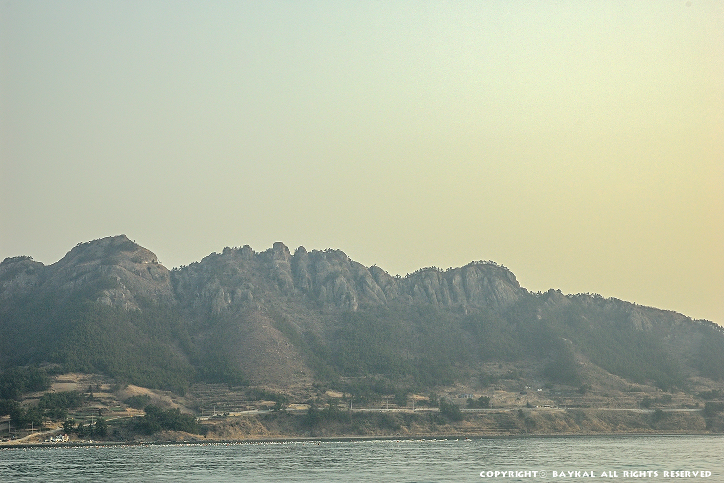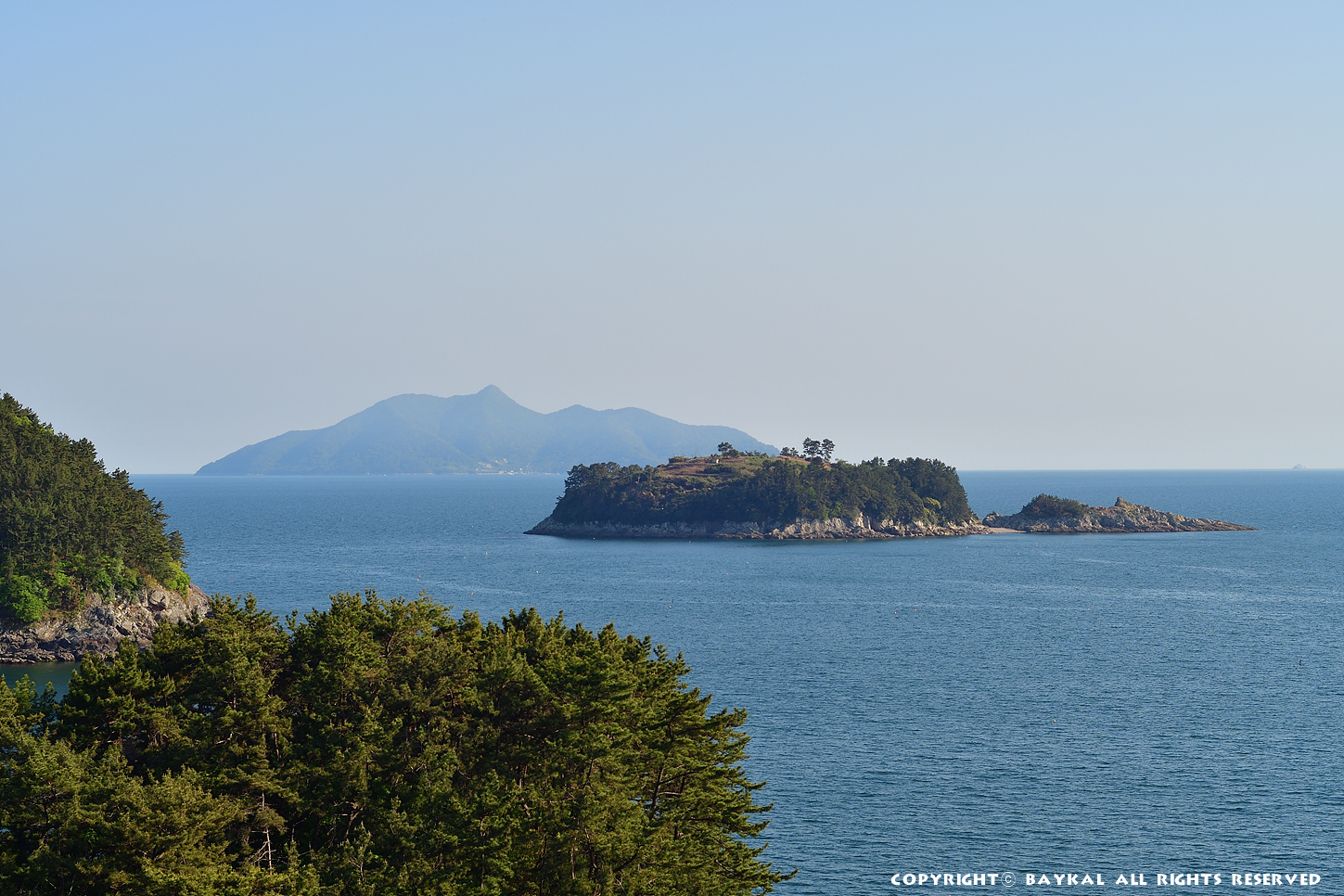 멀리 통영 미륵산이 보인다