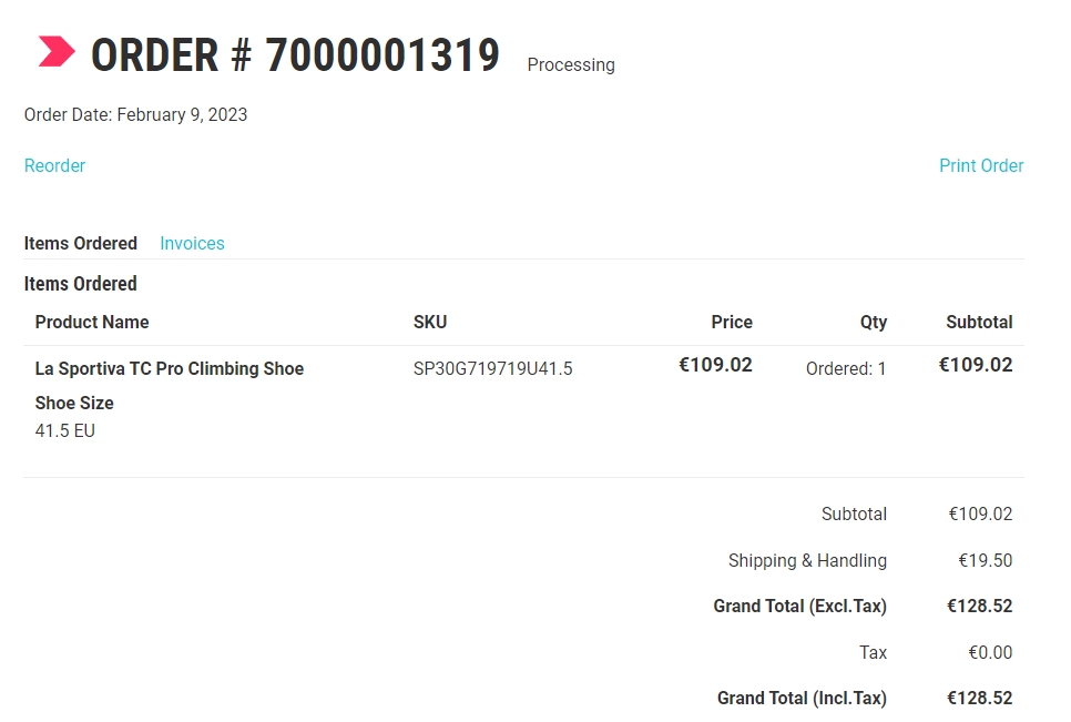 올해 암벽 시즌이 시작되기 전 epicTV shop 에서 찾아 보니 마침 세일 중이라 €109.02 에 구매를 했다.