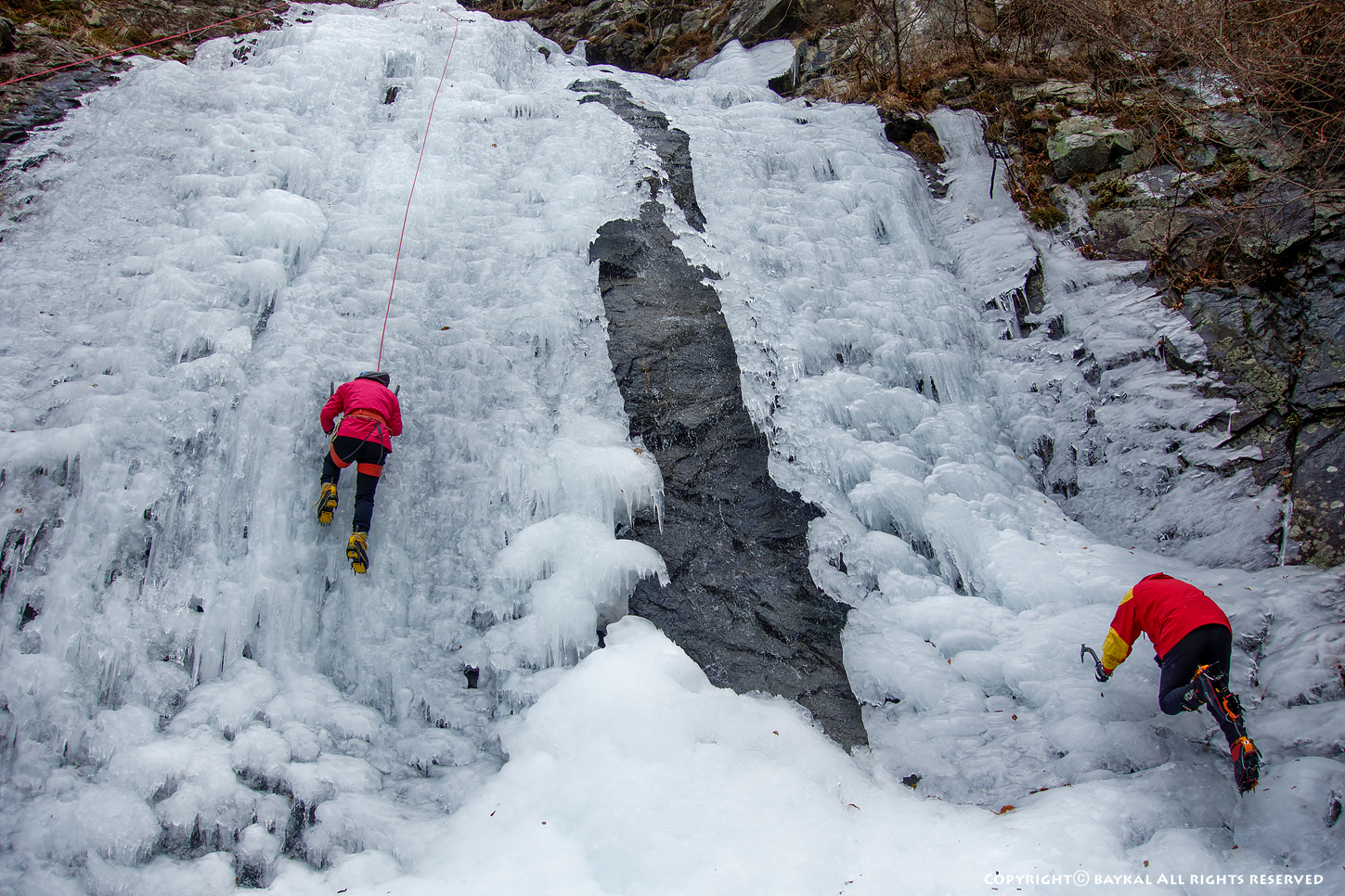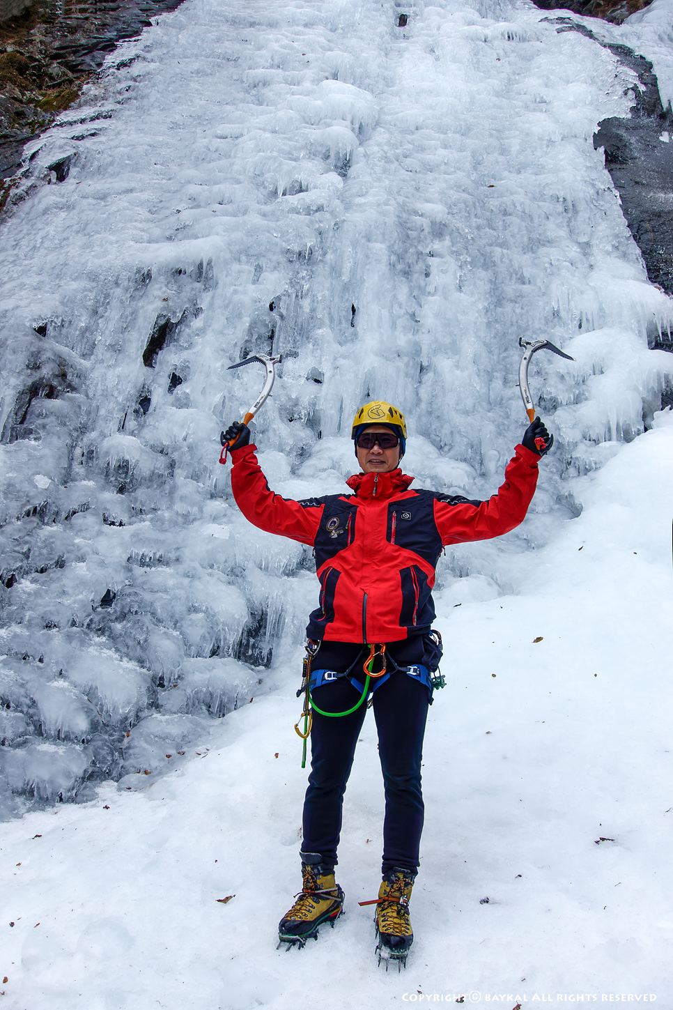 하단을 끝내고 혼자서 중단을 올라 갔는데 상단 빙벽이 떠 있어서 위험하다 ~